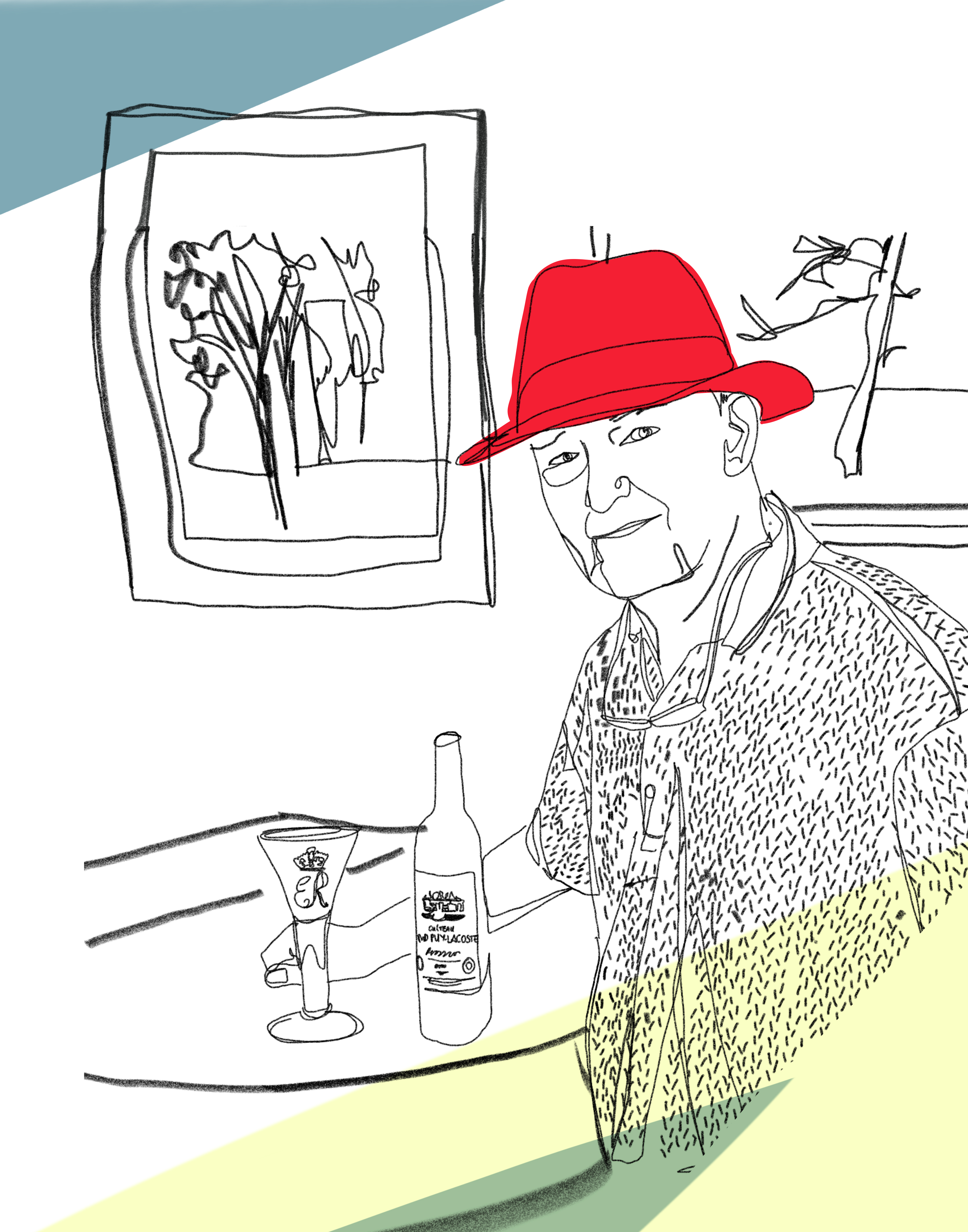 “While staying with us in Nice, David gave me a pencil portrait of myself. This started the conversation, which became an idea, which became a commission and is now a reality. The result is stunning and celebrates my long and fruitful relationship with David over many years. Long may it continue.”
