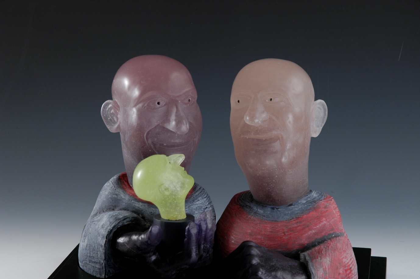 During their visit, the two friends began discussing the idea of a glass sculpture that would depict them in conversation — a visual dialogue between artist and collector. Although initially hesitant to take on a portrait-based commission, David soon became captivated by the concept.